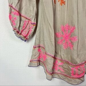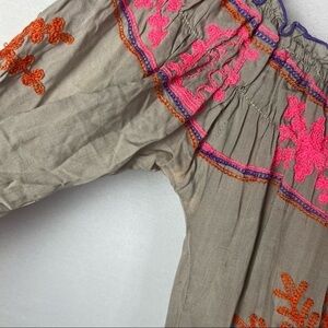 Poupette St. Barth Beige Embroidered Off the Shoulder Long Sleeve Blouse S