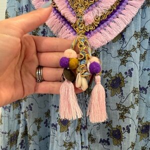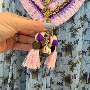 Poupette St. Barth Blaba Mini Dress Shell and Tassel Embellished Blue Fringe