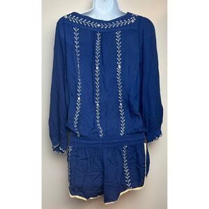 Poupette St. Barth Blue Romper with Embroidery Sz. 2