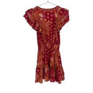 Poupette St Barth Camila Smocked Mini Dress, Embroidered Red Yellow XS Beach