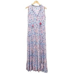 Poupette St. Barth Clara Maxi Dress Blue Bloom Floral Long Women’s Size Medium