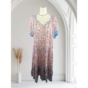 Poupette St Barth Floral Boho Midi Dress | Blue Orange Print | Size XS