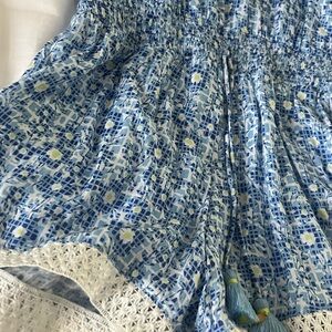 Adorable romper with floral pattern. Features ruffled sleeves and elastic waist. Perfect for playful days.