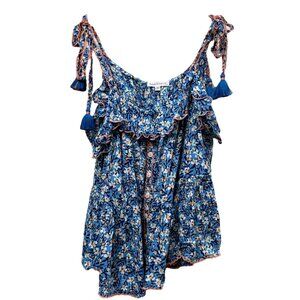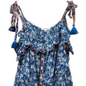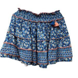 Poupette St Barth Girls Outfit Size 8 Skirt and Top Blue Floral Boho Tassel