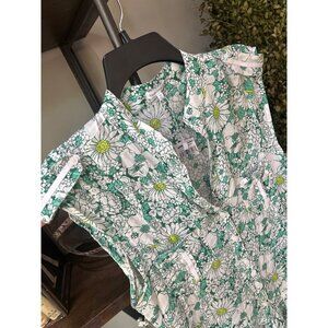 Poupette St Barth Heni Floral Tassel Trimmed Dress Green White Womens Size XS