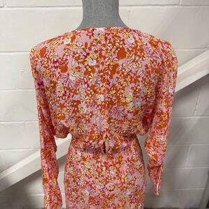 Poupette St Barth Ilona Pink Sweet Bell Floral Long Sleeve Boho Resort Sun Dress
