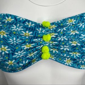 Poupette St. Barth Isma Bandeau Bikini Top Blue Daisy Small S