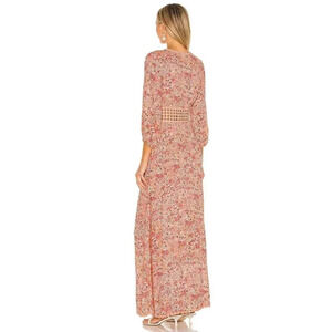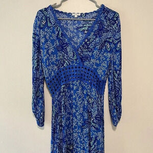 Poupette St Barth Joan Maxi Crochet Waist Dress in Blue Malva Bird Print XS