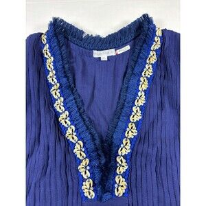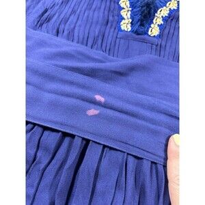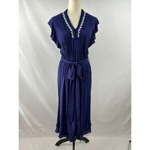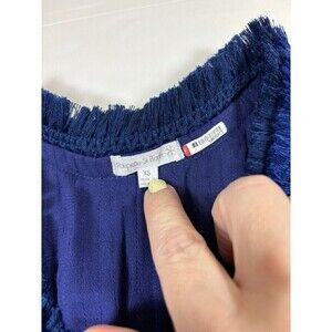 Poupette St Barth Maxi Dress Navy Blue XS Fringe Puka Shell Accents