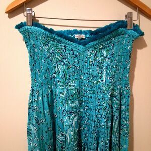 Poupette St Barth Maxi Dress Strapless Aqua Blue Floral Flowy Boho Size Small