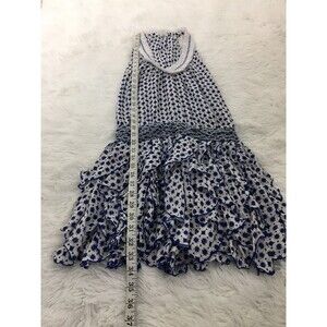Poupette St. Barth Women's V Neck Sleeveless Mini Dress Blue white ruffle Size M. drop waits smocked diamond Pre owned in excellent condition see pictures for more details and measurements
