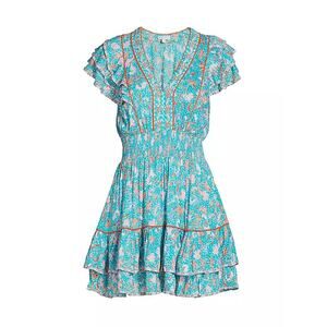 Poupette St Barth NWT Camila Green V-Neck Flutter Sleeve Mini Dress Medium