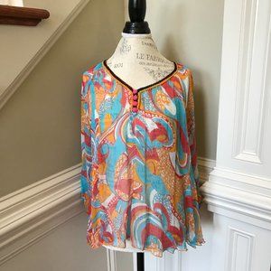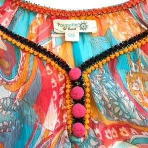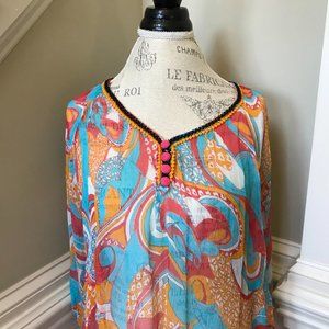 Women's Poupette St Barth Poncho / Blouse. Eye catching orange and turquoise colors in a sheer construction. Wear over a tank, blouse or even a swim suit by the pool. Originally $190. Fast Same Day Shipping!