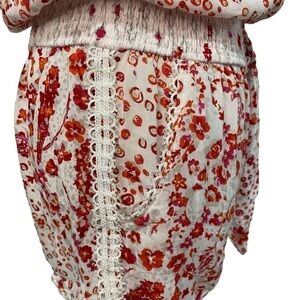 Poupette St Barth Red and White Lightweight Floral Boho Romper Size XS