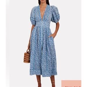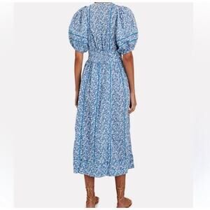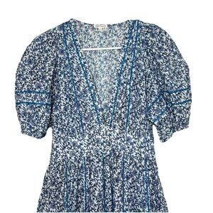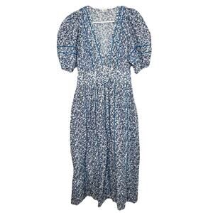 Poupette St Barth Rein MIDI Dress Floral Swiss Dot Medium Boho Puff Sleeve F16