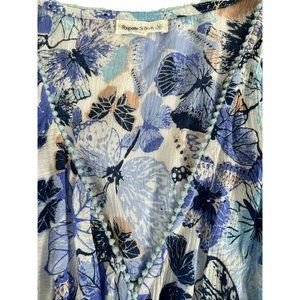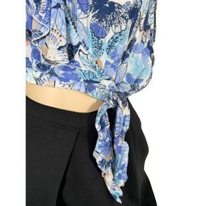 Poupette St. Barth Ruffle Cropped Tie Floral Blue Top 1 XS Small