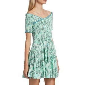 Poupette St Barth 'Soledad' Smocked Floral Mini Dress, Aqua Sunflower