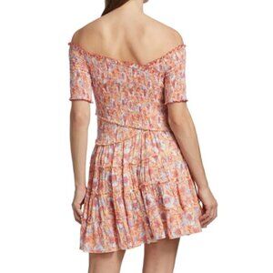 Poupette St. Barth 'Soledad' breezy mini-dress featuring a cross-over smocked top and tiered skirt construction.