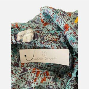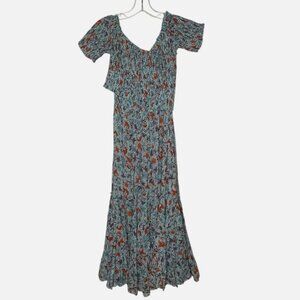 Poupette St. Barth Soledad Smocked Off-Shoulder Midi Dress Blue Size Small NWT