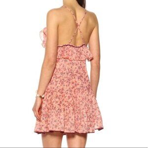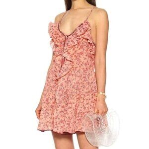 Poupette St Barth 'Tamara' Ruffle-Trim Floral-Print Mini Dress, Peach Lilac