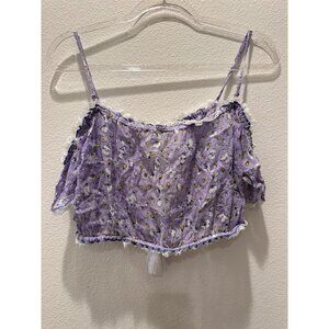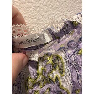 Poupette St Barth Women's Purple Floral Tassels Cold Shoulder Crop Tops Size XS