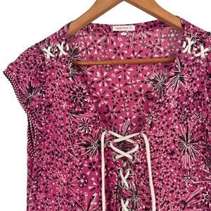 Poupette St. Barth Pink Black Cap Sleeve Tie Front Slouchy Geometric Relax Mini Dress Sml