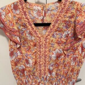 Poupette St Barth Camila Girls Floral Mini Dress. Peach/Blue/Orange. Size XL.