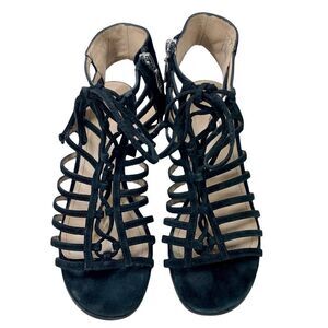 Pour La Victoire Amabelle Black Suede Leather Gladiator Cage Sandal 7.5