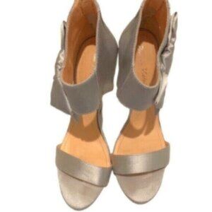 Pour La Victoire Light Grey Satin Wedge Shoes 8.5B