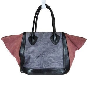 Pour La Victoire Maison Croc Embossed Tote Bag Brick Red Black Suede Leather