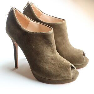 Pour La Victoire Moss Green Suede Leather Peep Toe Stiletto Heel Bootie Shoes 6