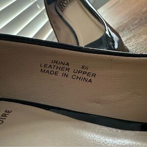 Patent leather upper. Breathable leather lining. Lightly padded footbed. Patent-covered heel and hidden platform. Leather sole. Size 6.5. Great used condition - see photos for signs of wear.