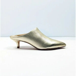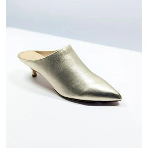 Pour La Victoire Women's Korrine Leather Kitten Heel Pointed Toe Mules Champagne Size 6.5 M
