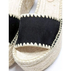Pour La Victoire Women's Ria Black Suede & Raffia Espadrille Platform Wedge Sandals Size 10 M