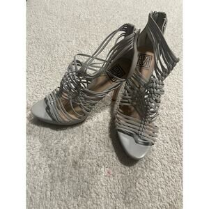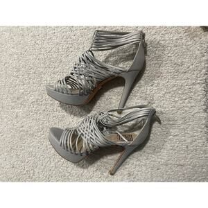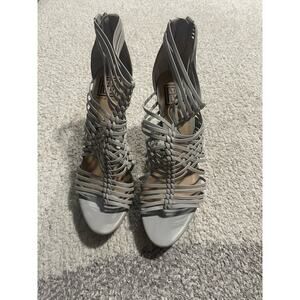 Pour La Victoire Women's Size 8 Leather Strappy High Heel Sandals Gray