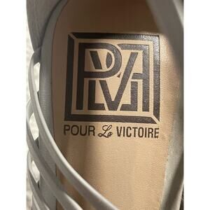 Pour La Victoire Women's Size 8 Leather Strappy High Heel Sandals Gray MSRP $249