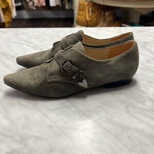 Pour La Victoire Zandra Monk Strap Pointed Toe Taupe Suede Loafer Size 7