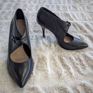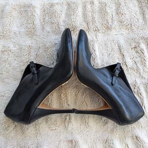 Pour La Victoire Ziegler Pointy Italian Leather Buckled Stiletto Blk Bootie Sz 8