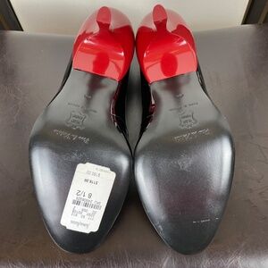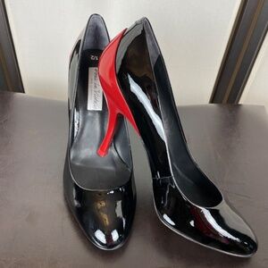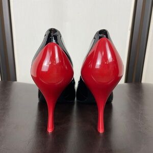 Pour La Victorie Dione Black Patent Leather High Heels, Red Heel Detail Size 8.5