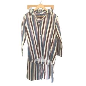 For the classic woman who enjoys sleeping in lightweight cotton, the Multi-Stripe Pajama Set features long sleeves with a button-front top, breast pocket and paired with an adjustable elastic waistband pant.