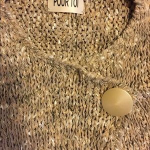 Comfortable earth tone loose knit sweater with large decorative button and three snap closure. Excellent condition. Dry clean only. Medium.