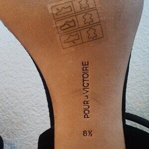 Pour la Victoire Black Leather Strappy Cork Heels Womens 8.5