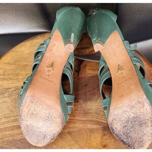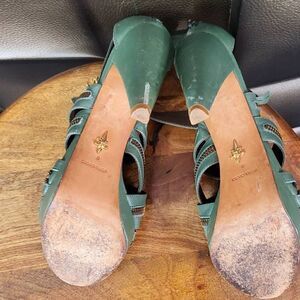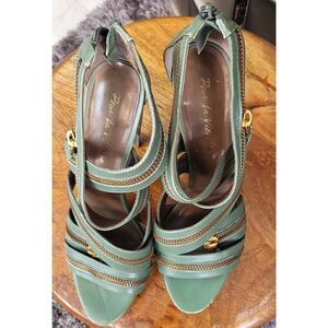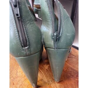 Mint green zippered criss crossed leather block heels 4 in. Small scuff on heel see pics