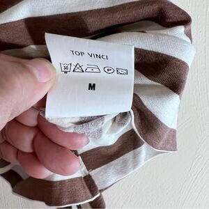 Pourquoi Pas Paris Womens Faux Wrap Surplice Top Sz Medium Brown Cream NWT