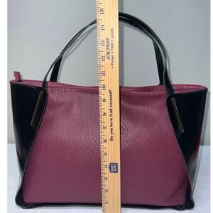 The “Poverty Flats” structured tote is a perfect blend of elegance and functionality. Crafted in a sophisticated burgundy color with black accents, this tote is designed to make a statement.