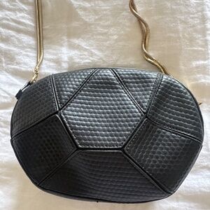 Approximately size of your hand. Great for going out, or attending a concert that required a small bag for entry. Slight tarnishing on the zipper and chain.