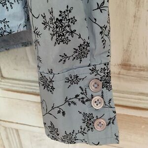 Powder Blue Button Down Shirt with Black Botanical Print XSP