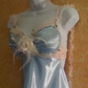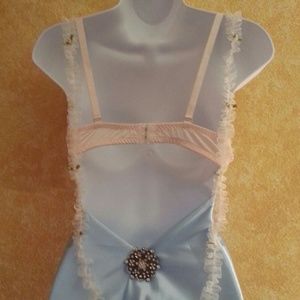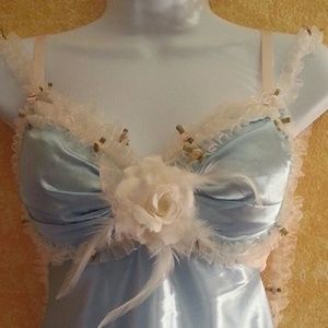 Powder Blue Vintage Style Empire Waist Babydoll Sheath Satin Wedding Bridal Gown