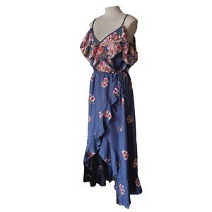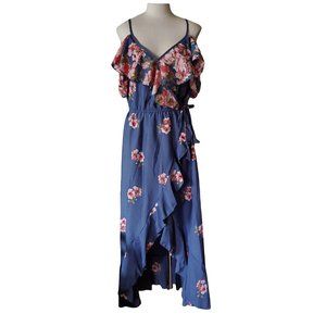 Powder Blue Floral High Low Cold Shoulder Dress