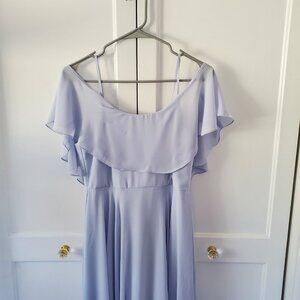 Off the shoulder maxi dress in powder blue. It has straps but the front part is off the shoulder. Brand is INA. There is a small snag on the fabric, top part od the dress (pictured). Would make a great bridesmaid's dress. Fully lined.
